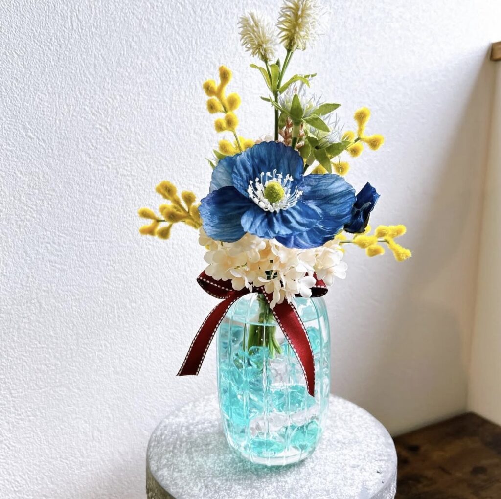 ご希望のお花で作るフラワーアレンジメントを、ポーセラーツでお作りいただく花器に飾っていただけます。
